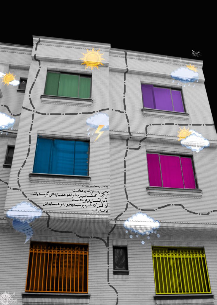 به من ایمان نیاورده است آن کس که شب سیر بخوابد و همسایه اش گرسنه باشد. به من ایمان نیاورده است آن کس که شب پوشیده بخوابد و همسایه اش برهنه باشد.