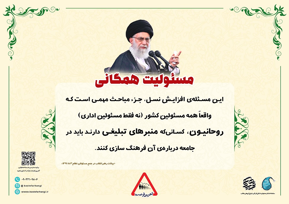 این مسئله افزایش نسل، جزء مباحث مهمی است که واقعاً همه مسئولین کشور (نه فقط مسئولین اداری)، روحانیون، کسانی که منبرهای تبلیغی دارند باید در جامعه درباره آن فرهنگ سازی کنند.