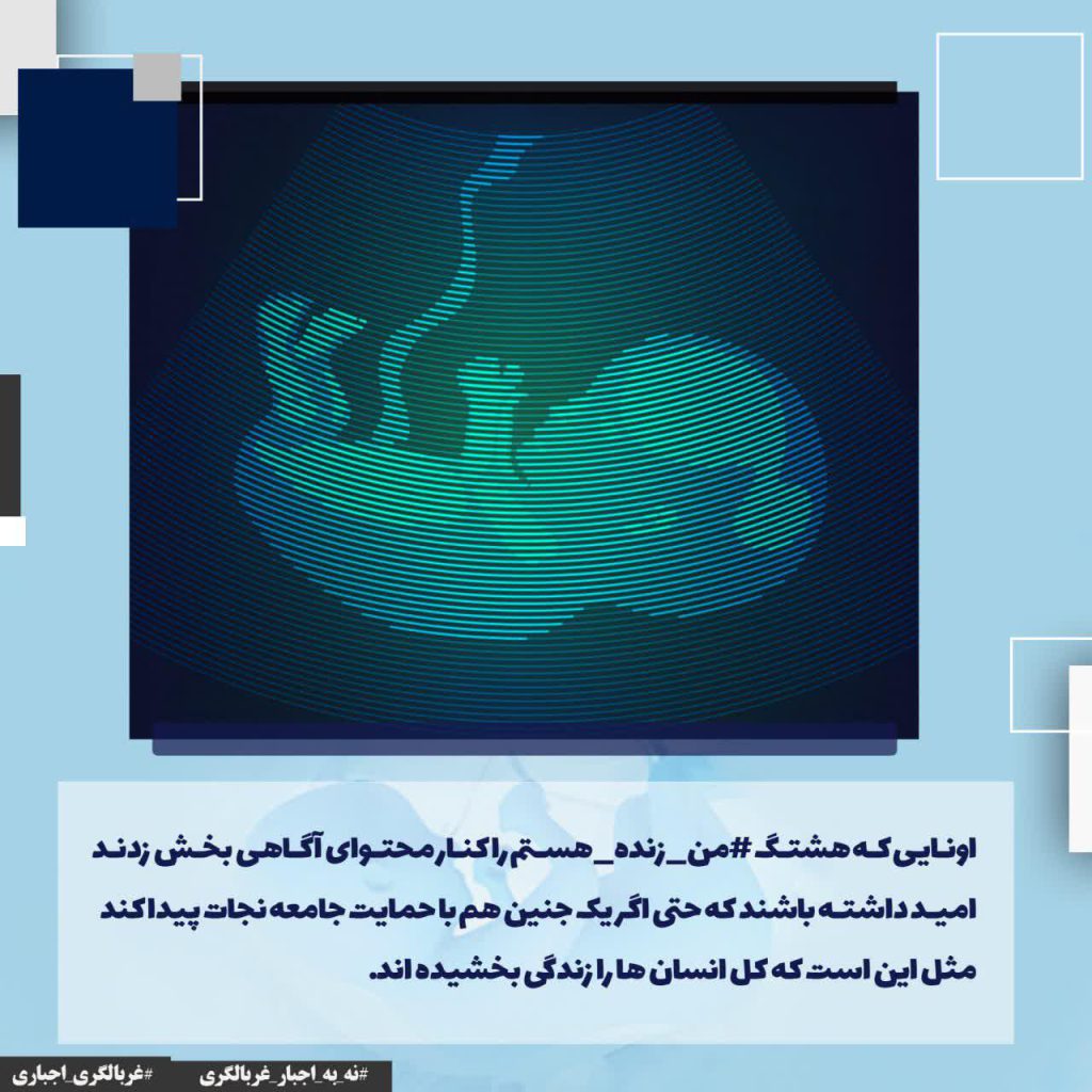 اونایی که هشتگ #من_زنده_هستم را کنار محتوای آگاهی بخش زدند امید داشته باشند که حتی اگر یک جنین هم با حمایت جامعه نجات پیدا کند مثل این است که کل انسان ها را زندگی بخشیده اند.