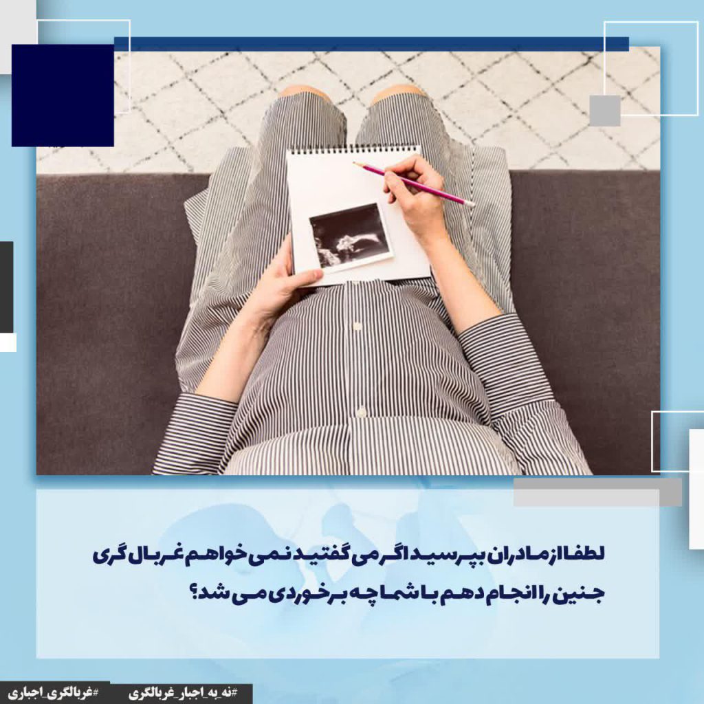 لطفا از مادران بپرسید اگر می گفتید نمی خواهم غربالگری جنین را انجام دهم با شما چه برخوردی می شد؟