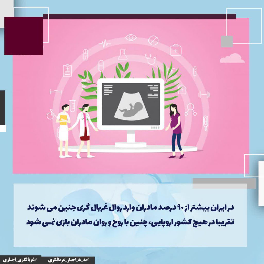 در ایران بیشتر از 90 درصد مادران وارد روال غربال گری جنین می شوند تقریبا در هیچ کشور اروپایی، چنین با روح و روان مادران بازی نمی شود.