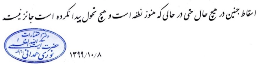 اسقاط جنین در هیچ حال، حتی در حالی که هنوز نطفه است و هیچ تحول پیدا نکرده است جائز نیست.